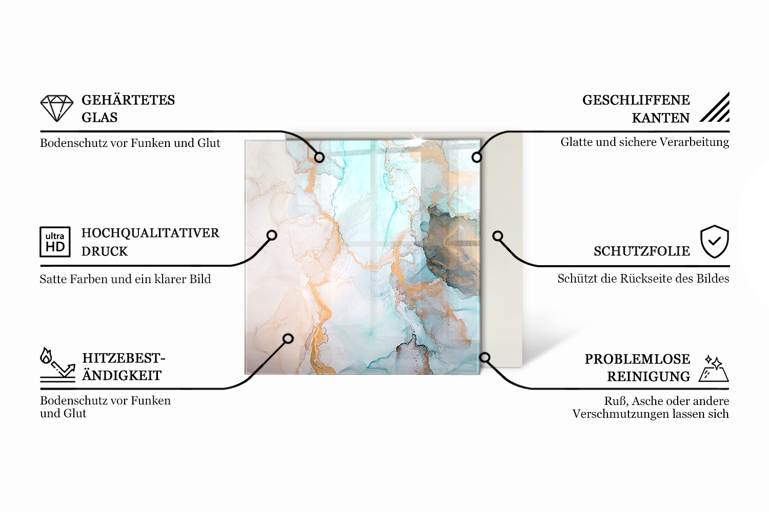 Diese robuste Funkenschutzplatte aus Glas wurde aus speziell gehärtetem Sicherheitsglas (ESG) gefertigt. Das Material ist extrem widerstandsfähig gegen Kratzer, hohe Temperaturen und das Gewicht des Ofens. Mit einer Diagonale von 40 cm eignet sich die Platte hervorragend als Unterlage für kleinere Kaminöfen, die sogenannte "Koza", oder als dekorativer Vorleger, um den Boden vor herausfallender Glut zu schützen. Das Motiv Farbe Hellgrau wird mittels moderner Drucktechnologie aufgebracht, was langlebige und intensive Farben garantiert, die auch bei Hitzeeinwirkung nicht verblassen.